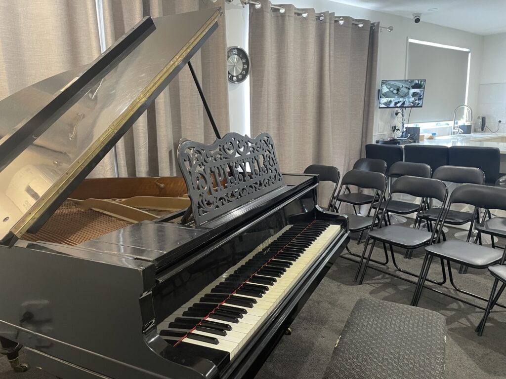 Our spacious room comes fully furnished with tables and chairs, making it ideal for music lessons, workshops, masterclasses, ensemble rehearsals, or meetings. The versatile setup accommodates both individual and group instruction.